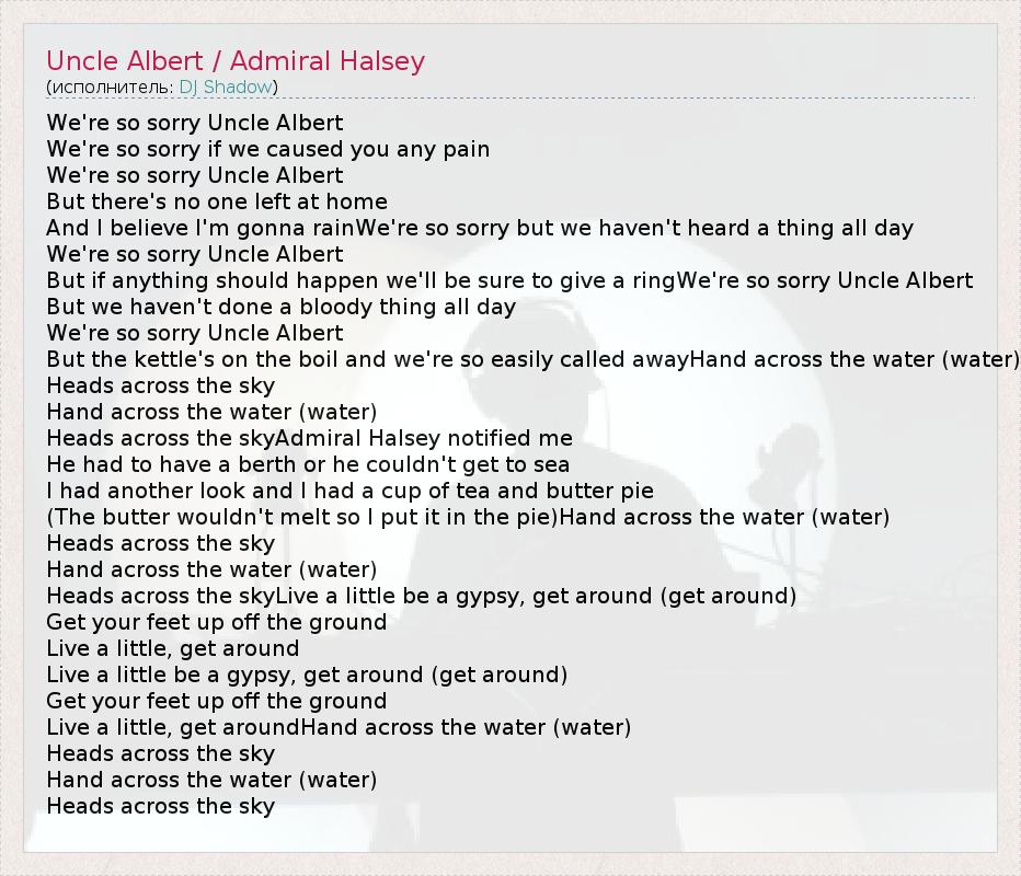 А как ты думаешь, о чем песня "Uncle Albert / Admiral Halsey" ?