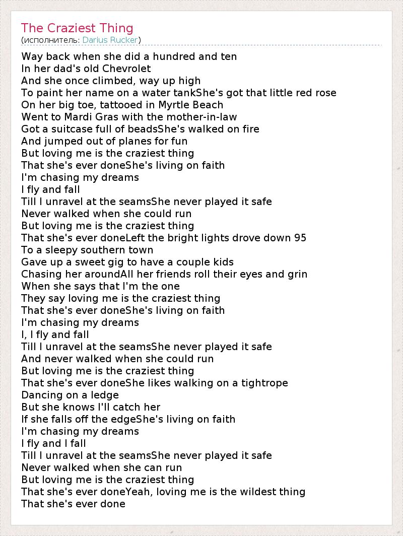 А как ты думаешь, о чем песня "The Craziest Thing" ?