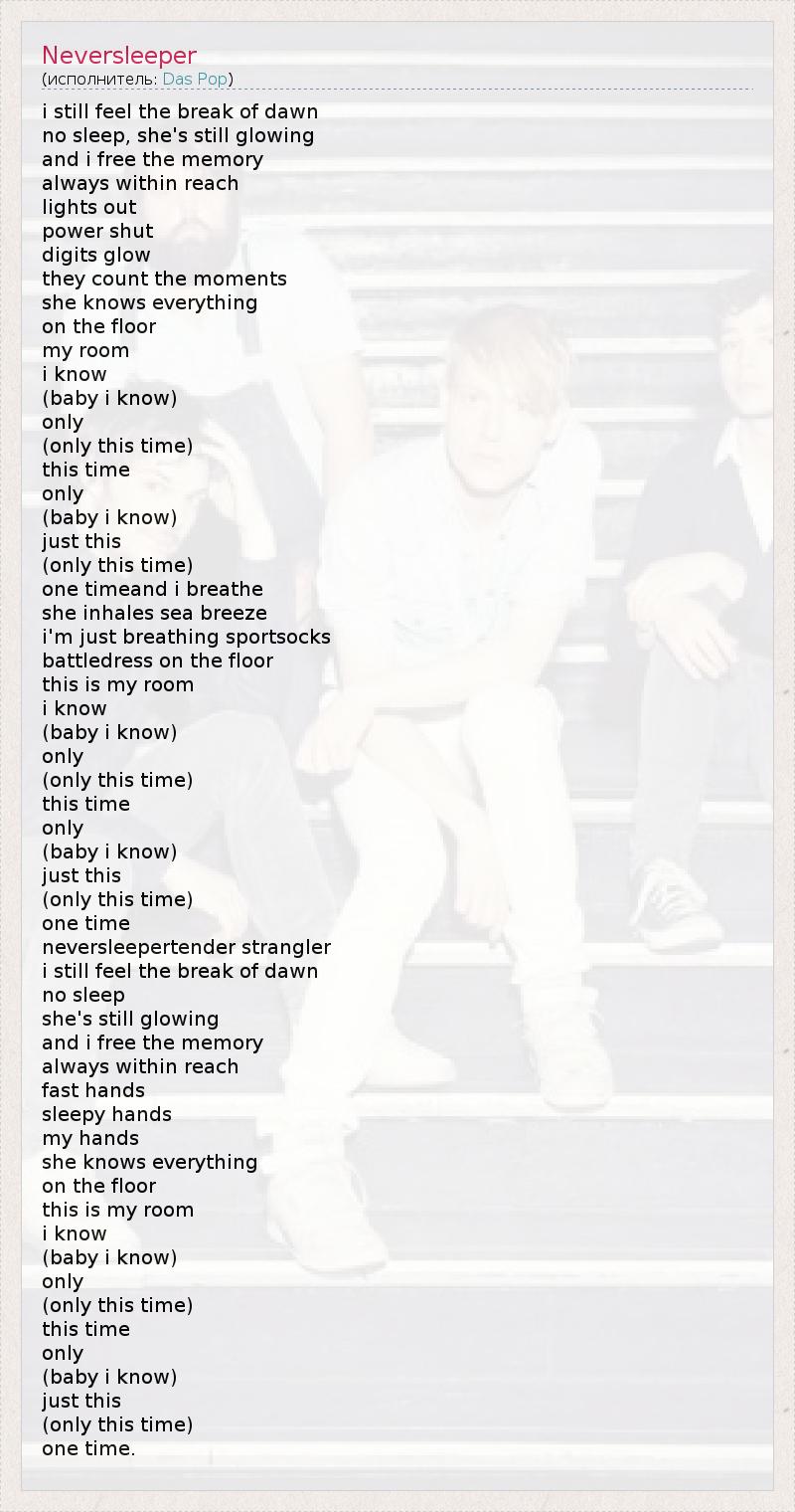 А как ты думаешь, о чем песня "Neversleeper" ?