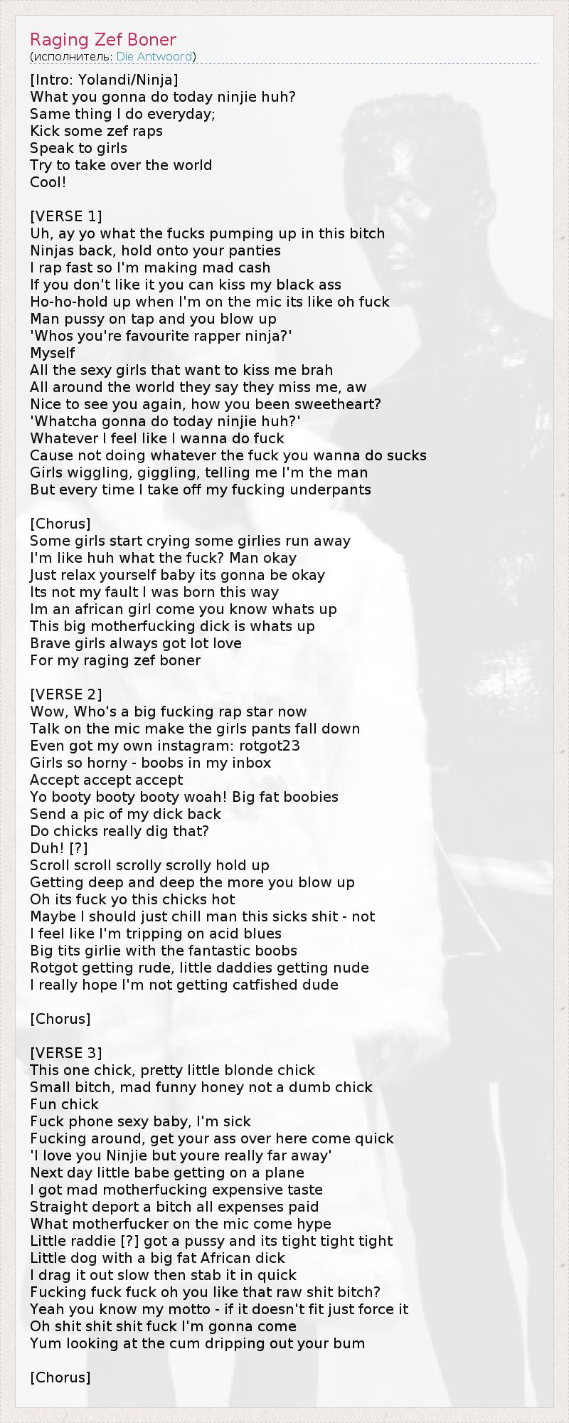 А как ты думаешь, о чем песня "Raging Zef Boner" ?