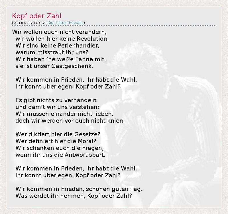 А как ты думаешь, о чем песня "Kopf oder Zahl" ?