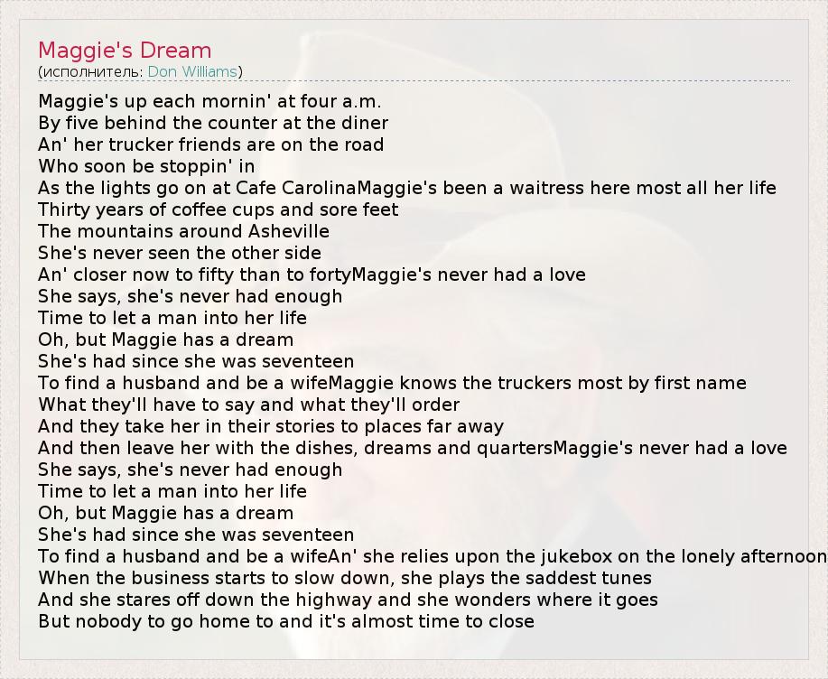 А как ты думаешь, о чем песня "Maggie's Dream" ?
