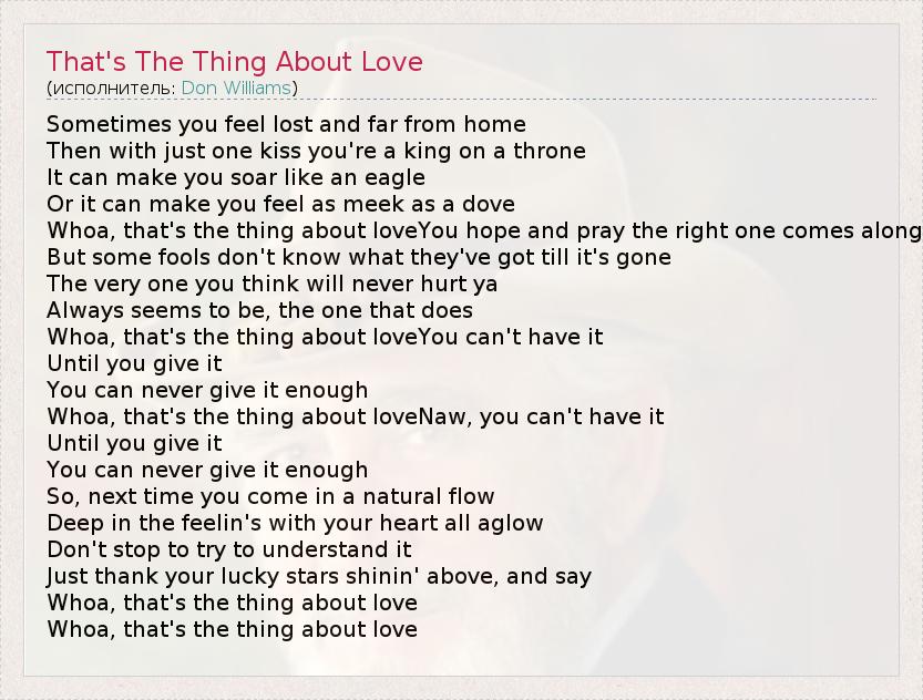 А как ты думаешь, о чем песня "That's The Thing About Love" ?