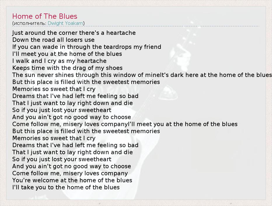 А как ты думаешь, о чем песня "Home of The Blues" ?