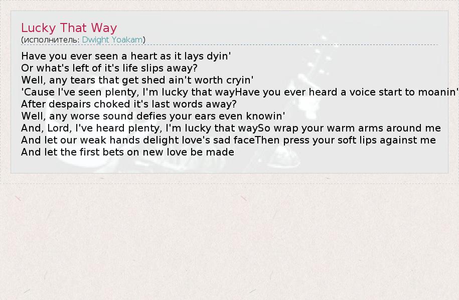 А как ты думаешь, о чем песня "Lucky That Way" ?