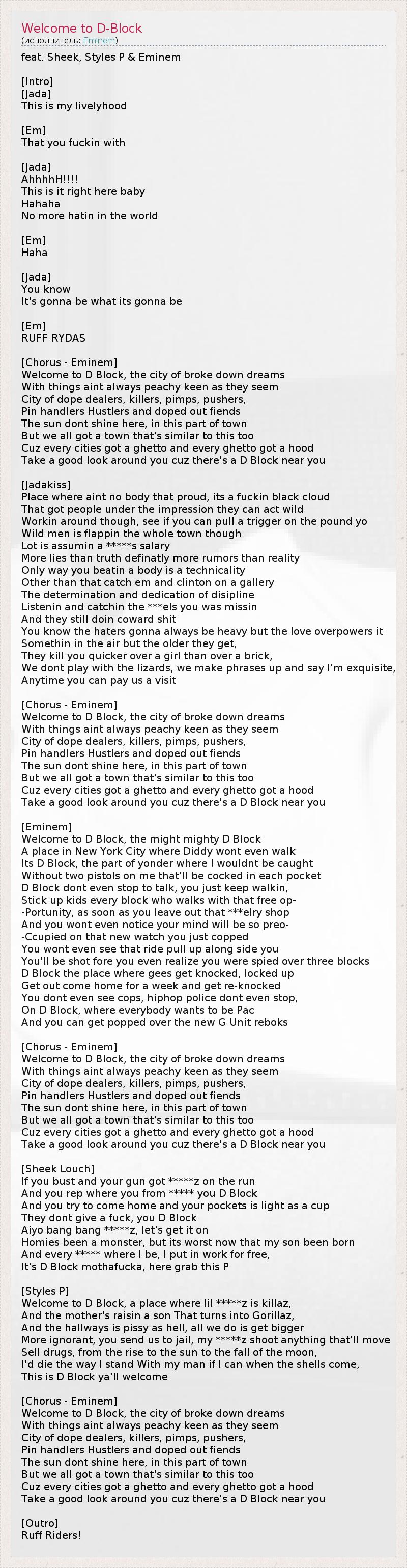А как ты думаешь, о чем песня "Welcome to D-Block" ?