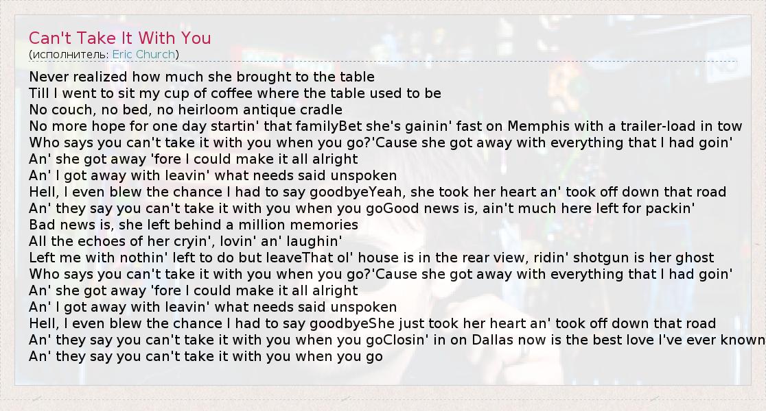 А как ты думаешь, о чем песня "Can't Take It With You" ?