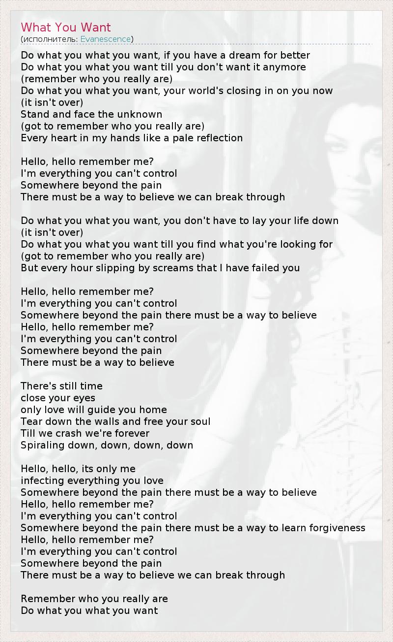 А как ты думаешь, о чем песня "What You Want" ?