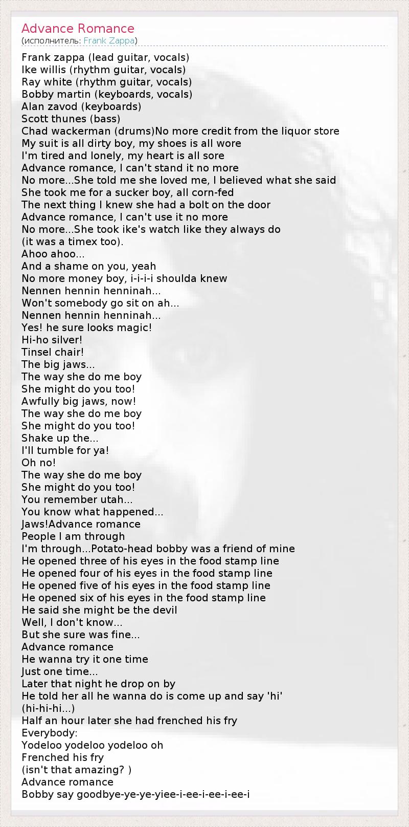 А как ты думаешь, о чем песня "Advance Romance" ?