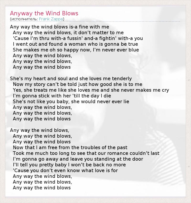 А как ты думаешь, о чем песня "Anyway the Wind Blows" ?