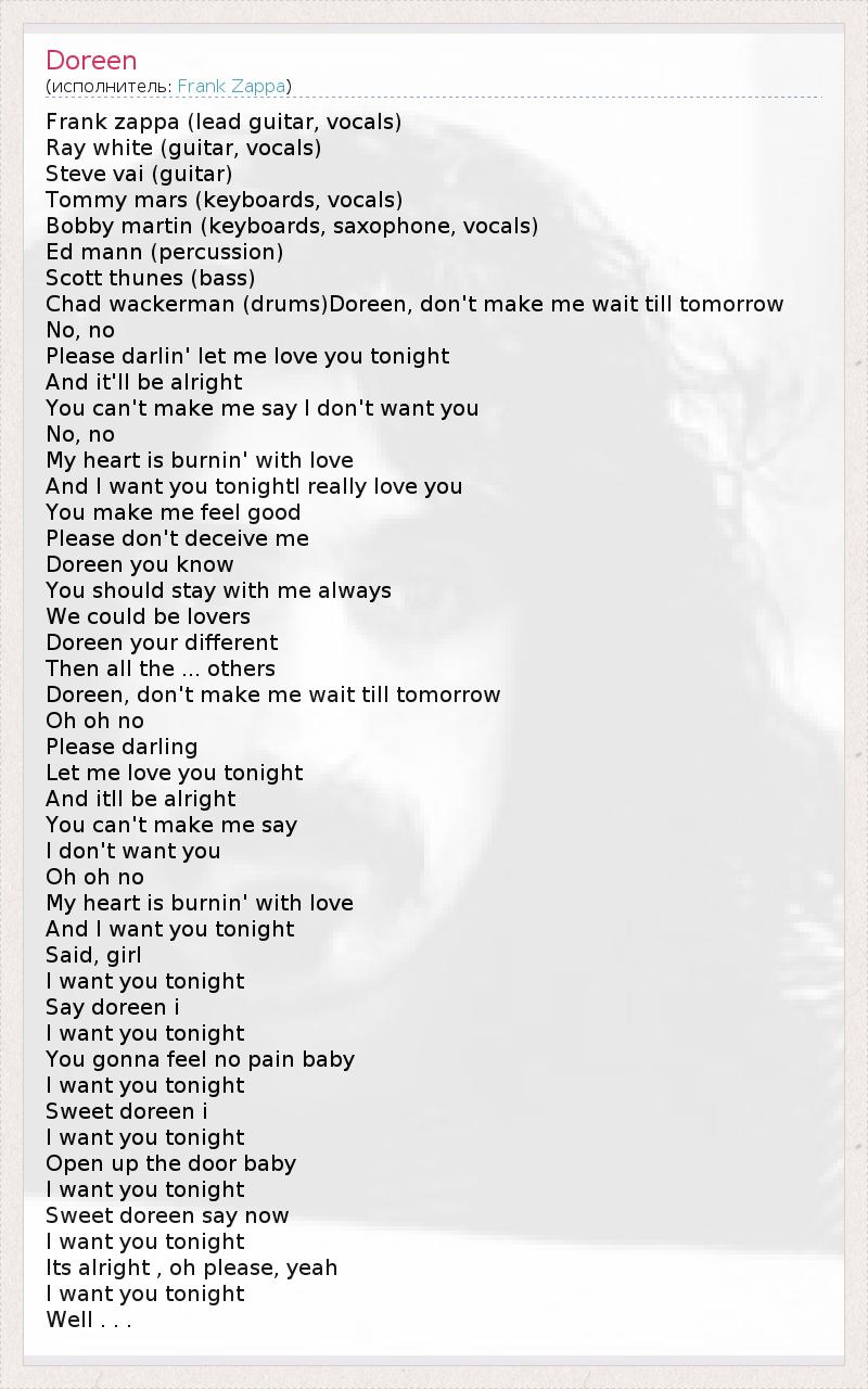 Chad wackerman (drums)Doreen, don't make me wait till tomorrow