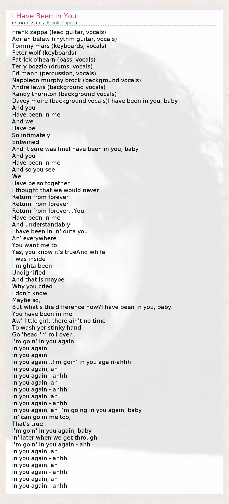 А как ты думаешь, о чем песня "I Have Been in You" ?