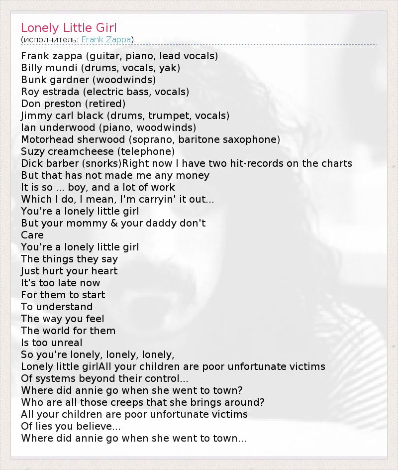 А как ты думаешь, о чем песня "Lonely Little Girl" ?