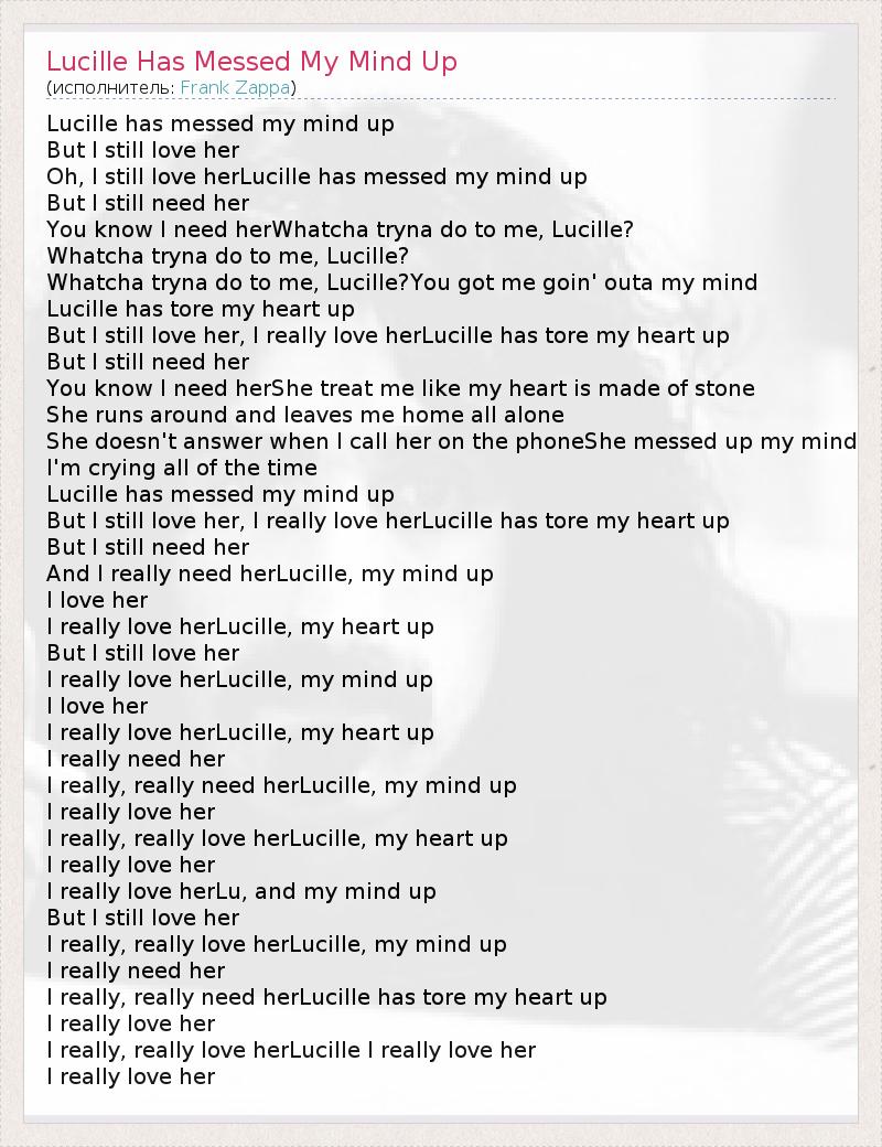 А как ты думаешь, о чем песня "Lucille Has Messed My Mind Up" ?