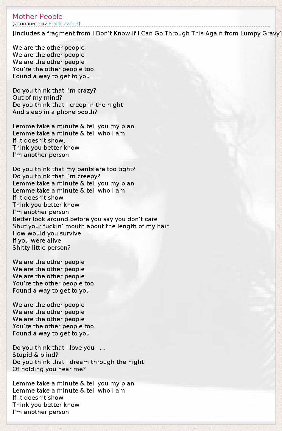 А как ты думаешь, о чем песня "Mother People" ?