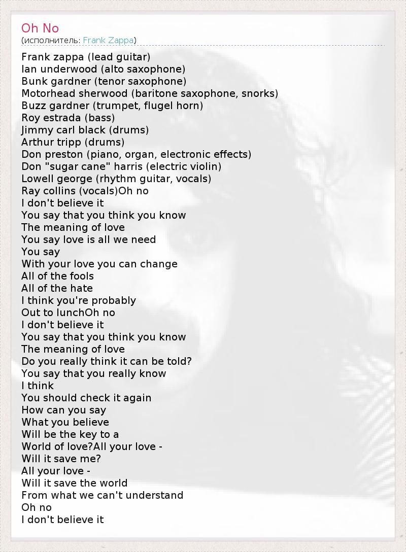 Ray collins (vocals)Oh no