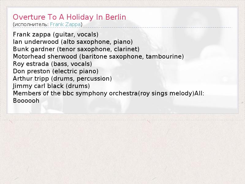 А как ты думаешь, о чем песня "Overture To A Holiday In Berlin" ?