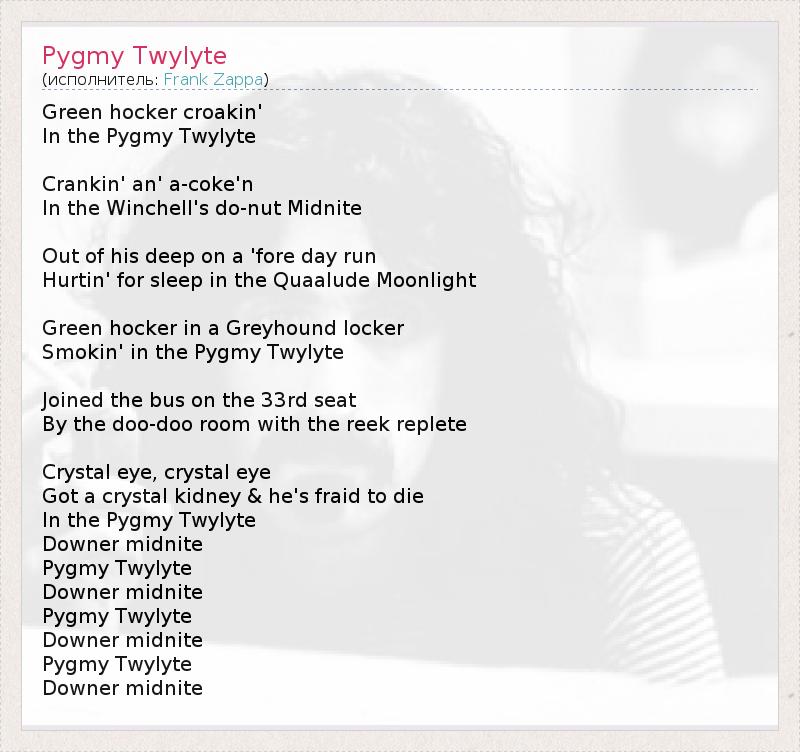 А как ты думаешь, о чем песня "Pygmy Twylyte" ?