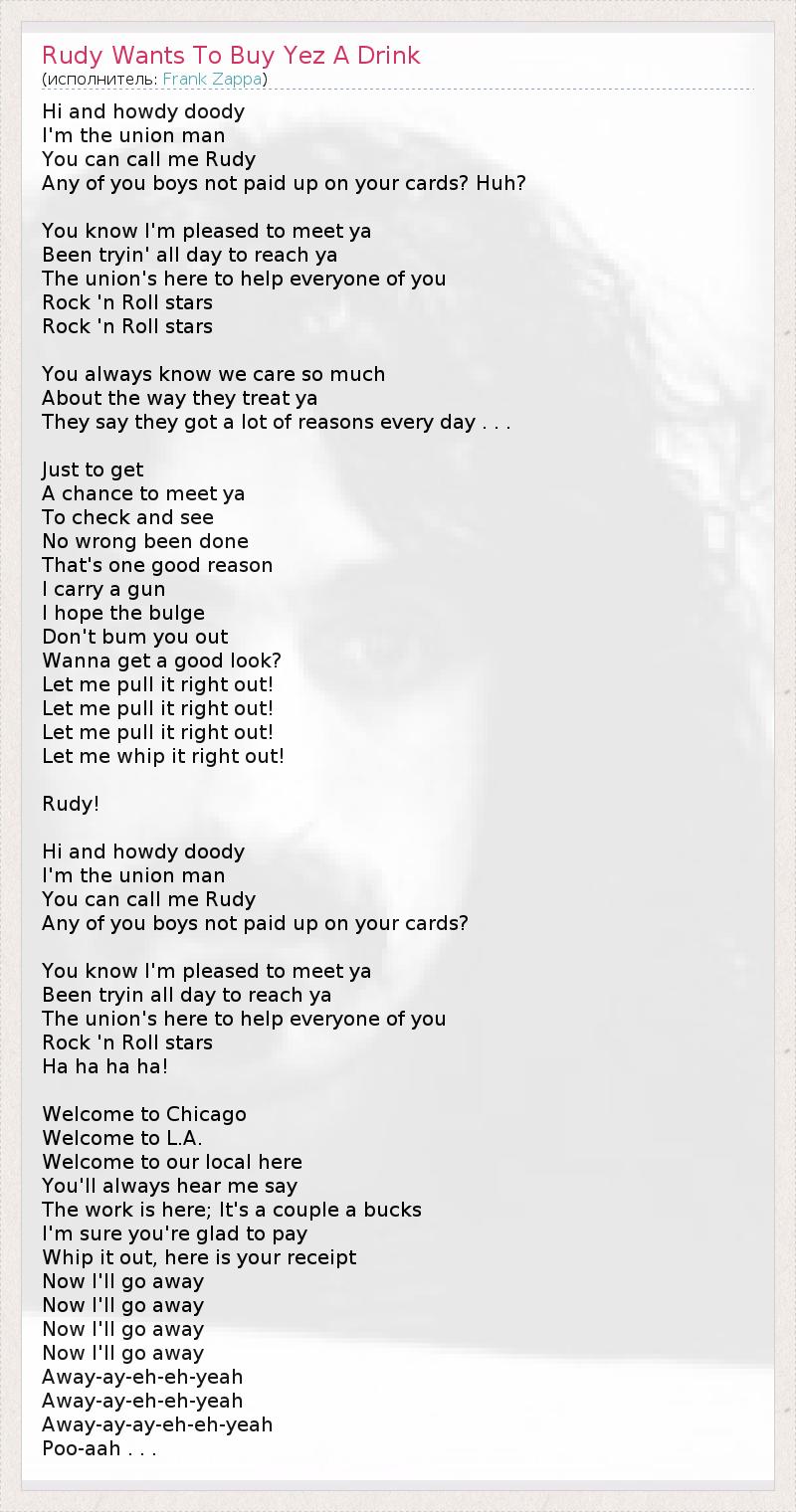 А как ты думаешь, о чем песня "Rudy Wants To Buy Yez A Drink" ?