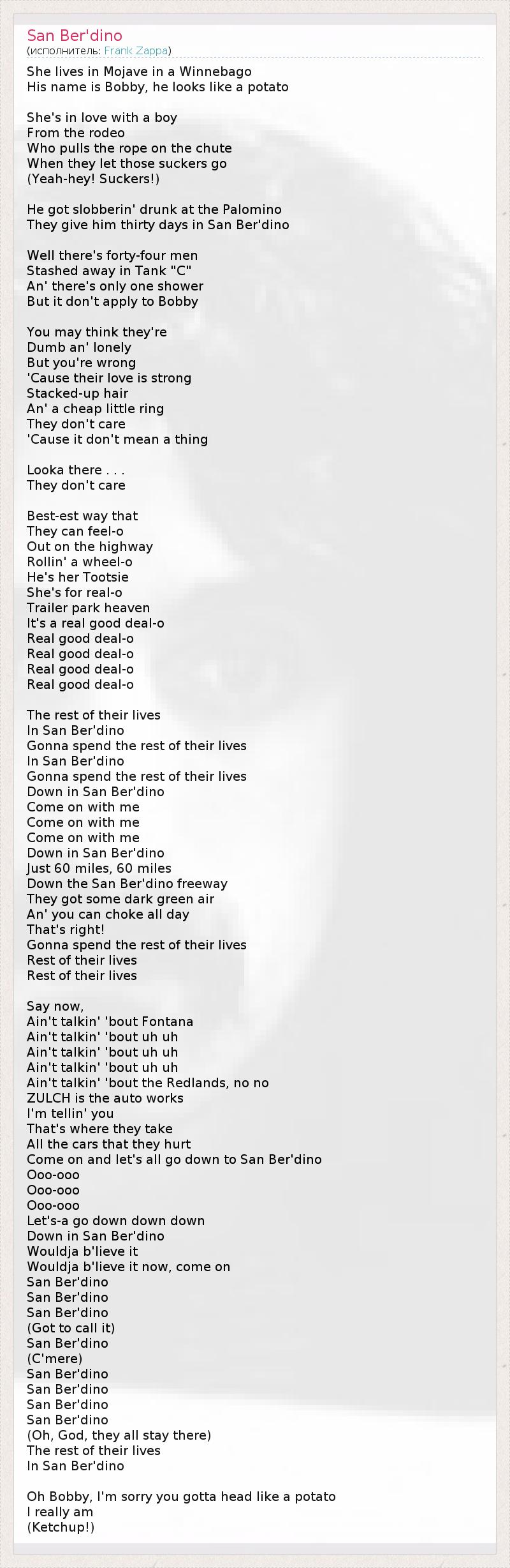 А как ты думаешь, о чем песня "San Ber'dino" ?