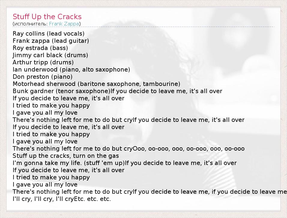 А как ты думаешь, о чем песня "Stuff Up the Cracks" ?