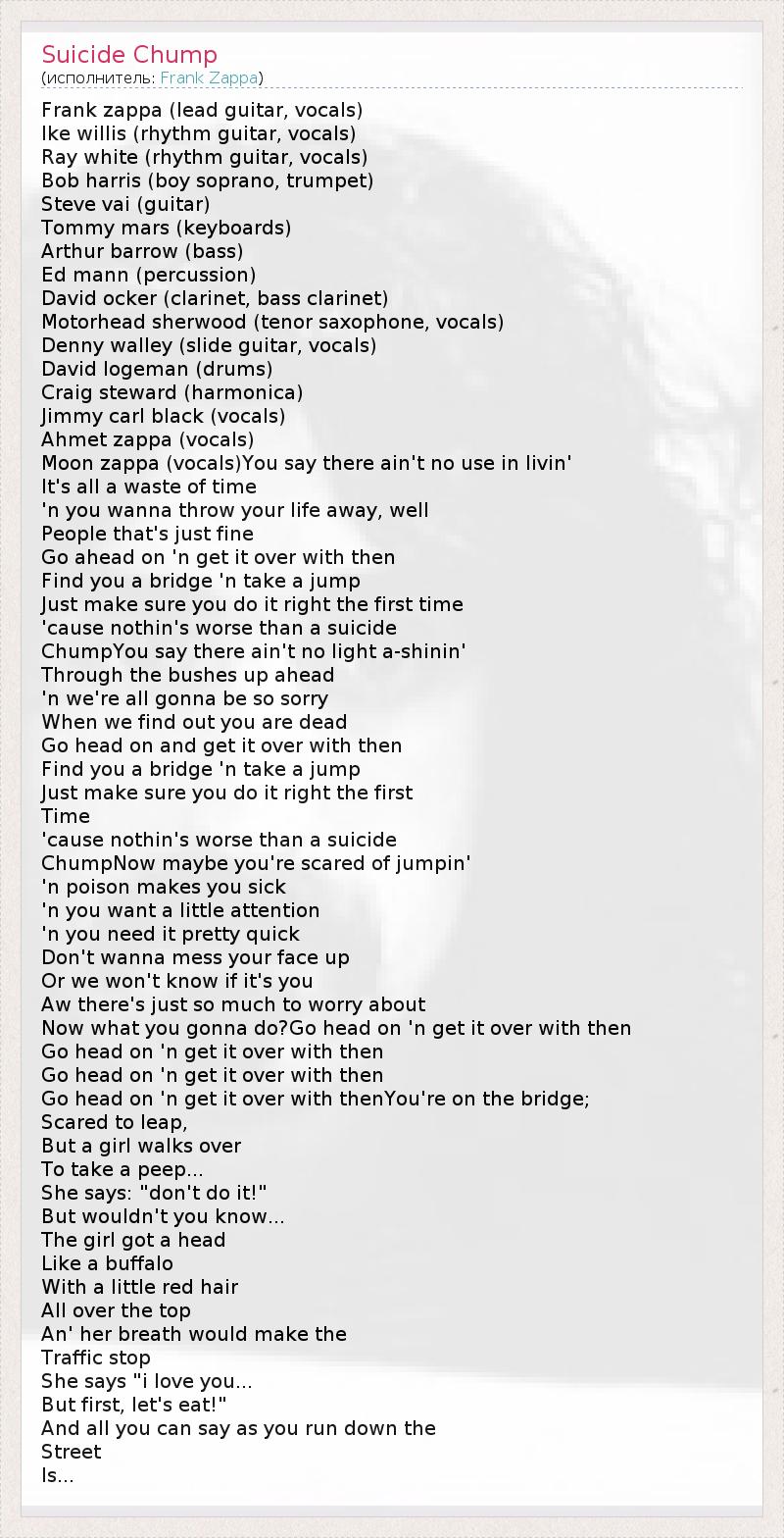А как ты думаешь, о чем песня "Suicide Chump" ?