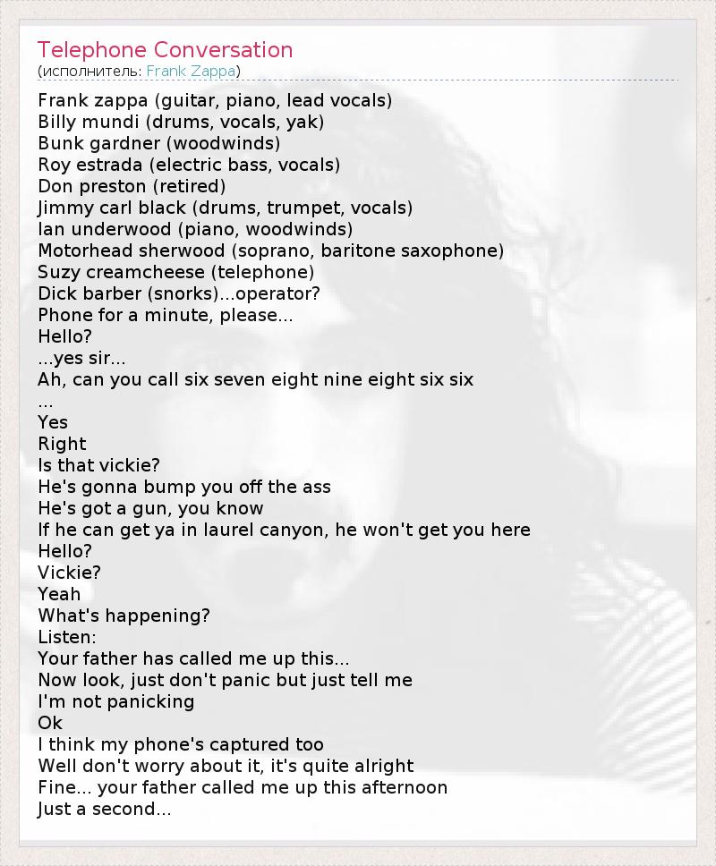 А как ты думаешь, о чем песня "Telephone Conversation" ?