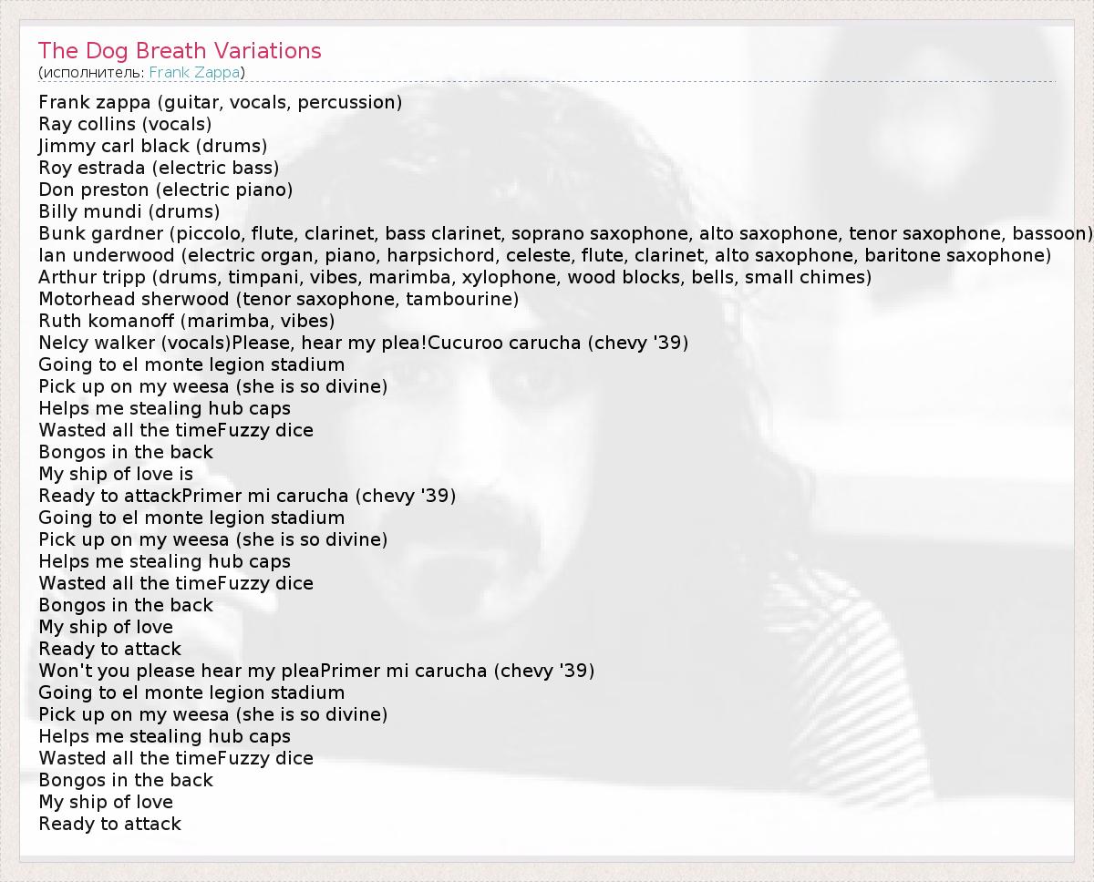 ГлавнаяИсполнителиFrank ZappaThe Dog Breath Variations