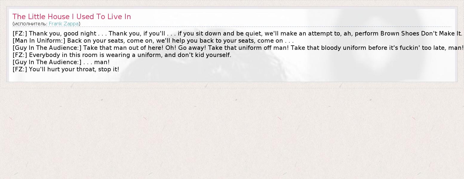 ГлавнаяИсполнителиFrank ZappaThe Little House I Used To Live In
