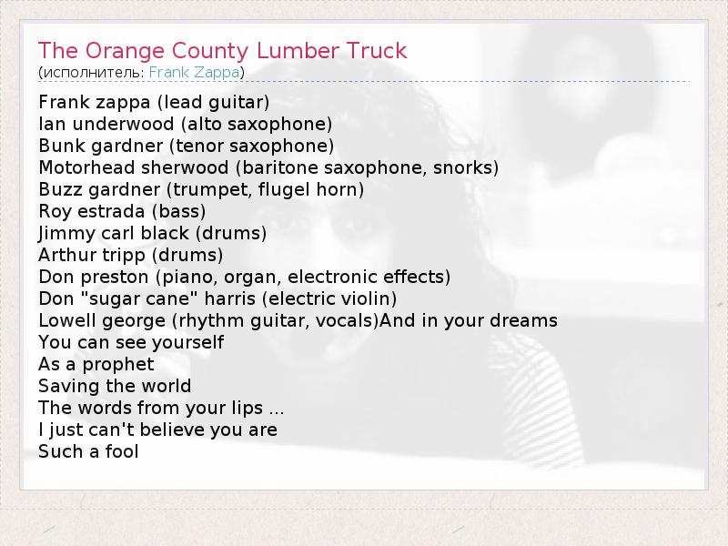 А как ты думаешь, о чем песня "The Orange County Lumber Truck" ?