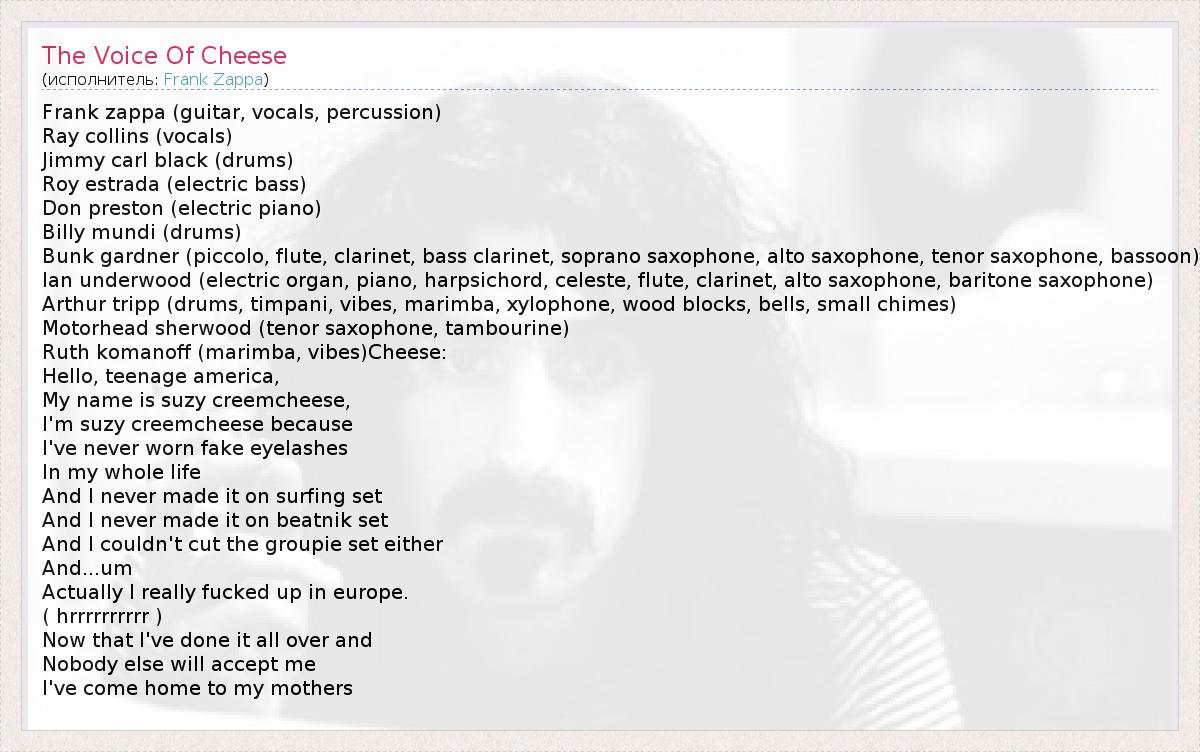 А как ты думаешь, о чем песня "The Voice Of Cheese" ?