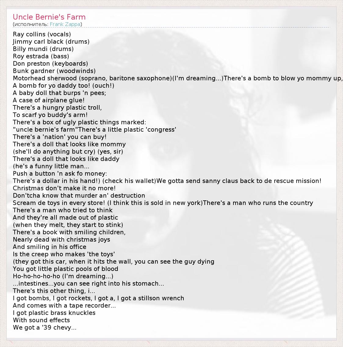 А как ты думаешь, о чем песня "Uncle Bernie's Farm" ?