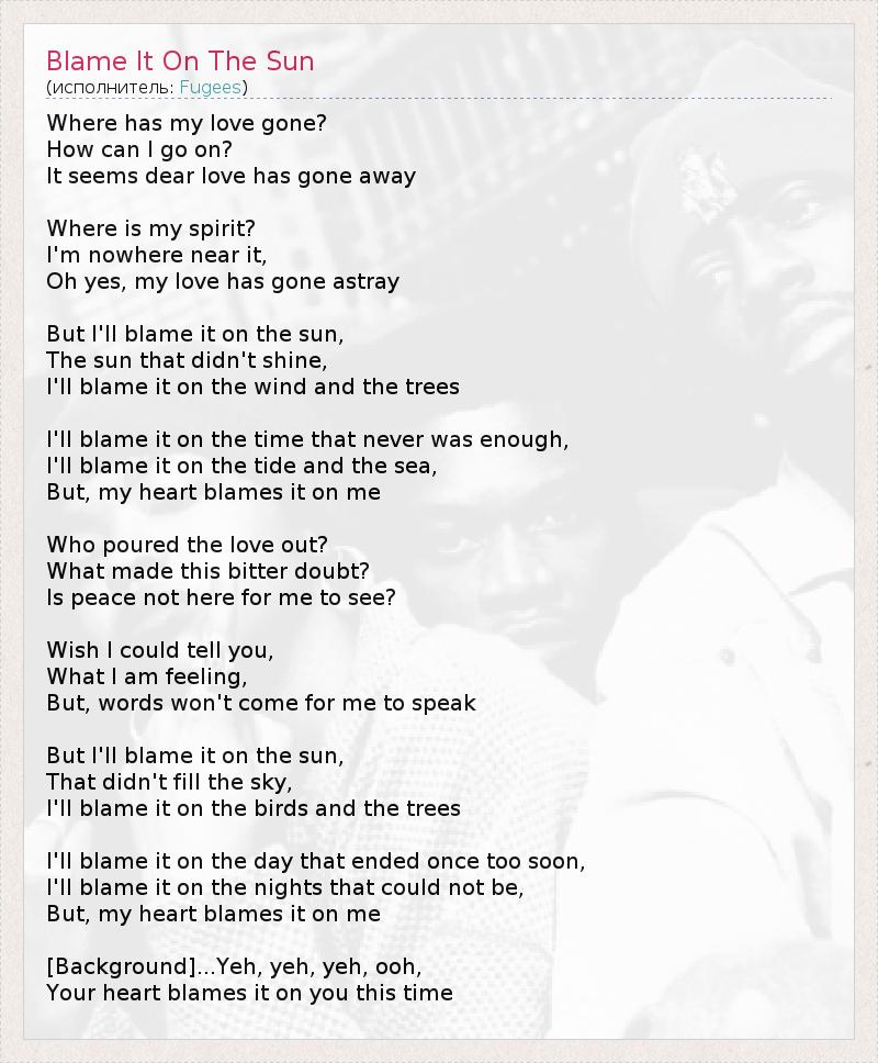 ГлавнаяИсполнителиFugeesBlame It On The Sun