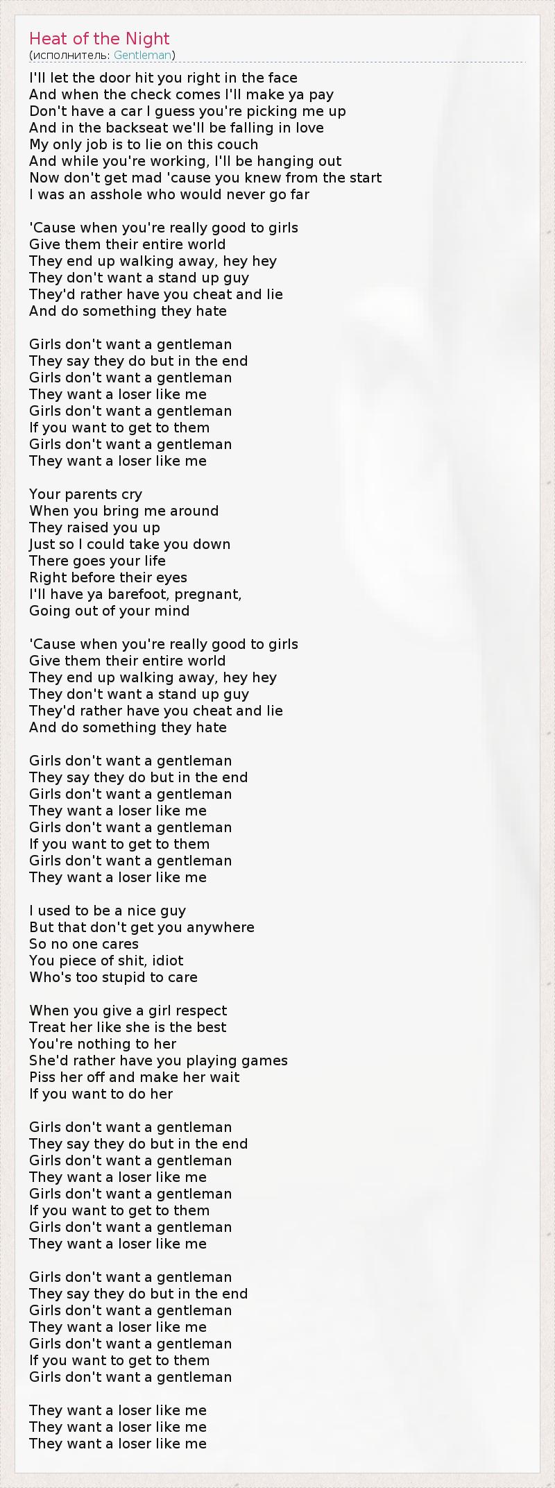 Girls don't want a gentleman