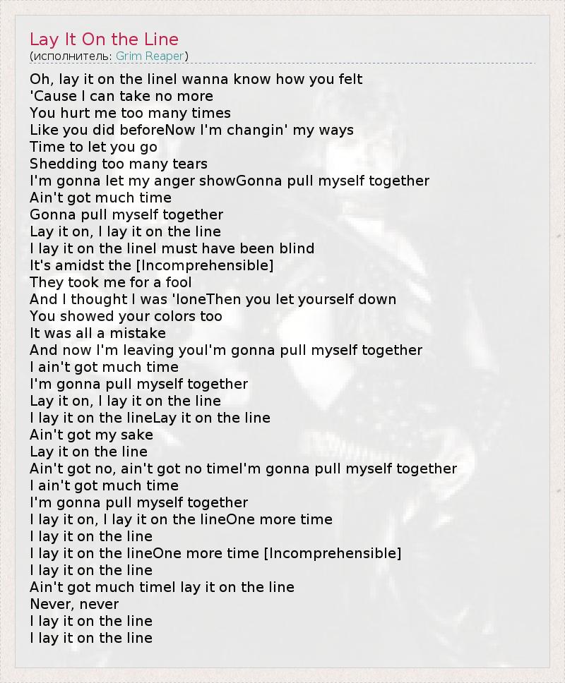 А как ты думаешь, о чем песня "Lay It On the Line" ?