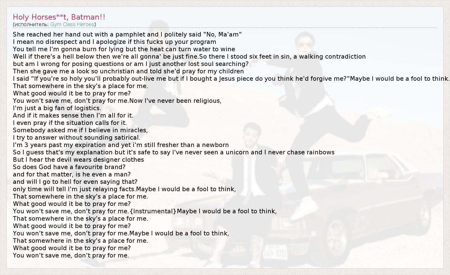 А как ты думаешь, о чем песня "Holy Horses**t, Batman!!" ?