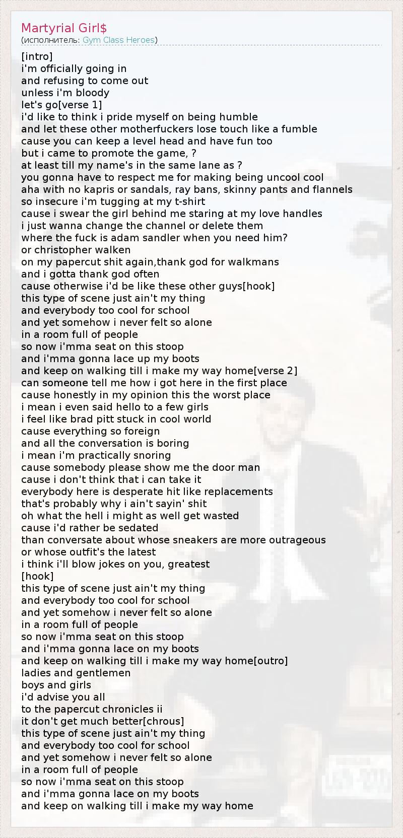 А как ты думаешь, о чем песня "Martyrial Girl$" ?