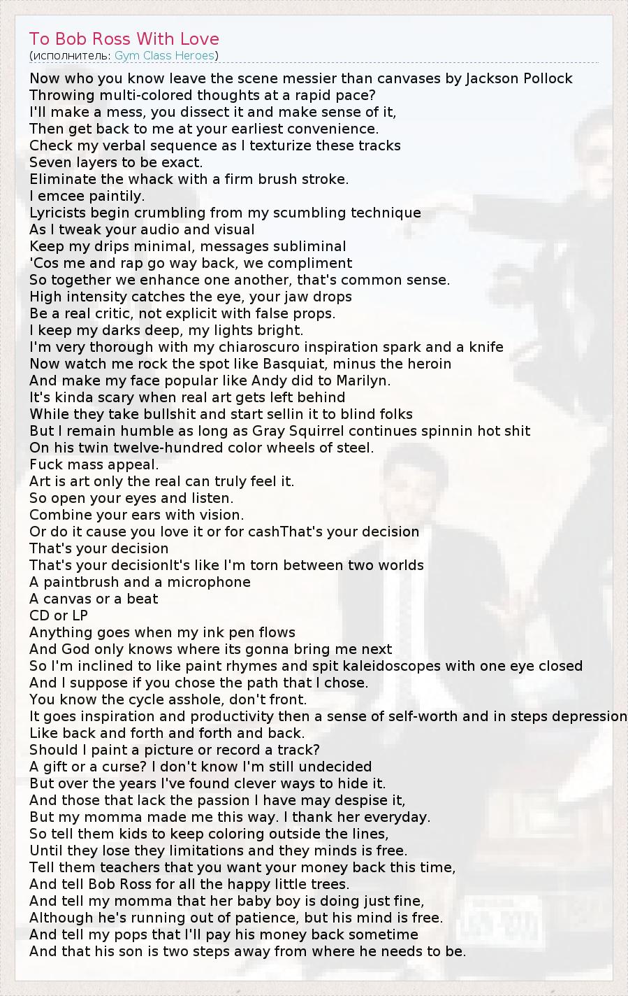 А как ты думаешь, о чем песня "To Bob Ross With Love" ?