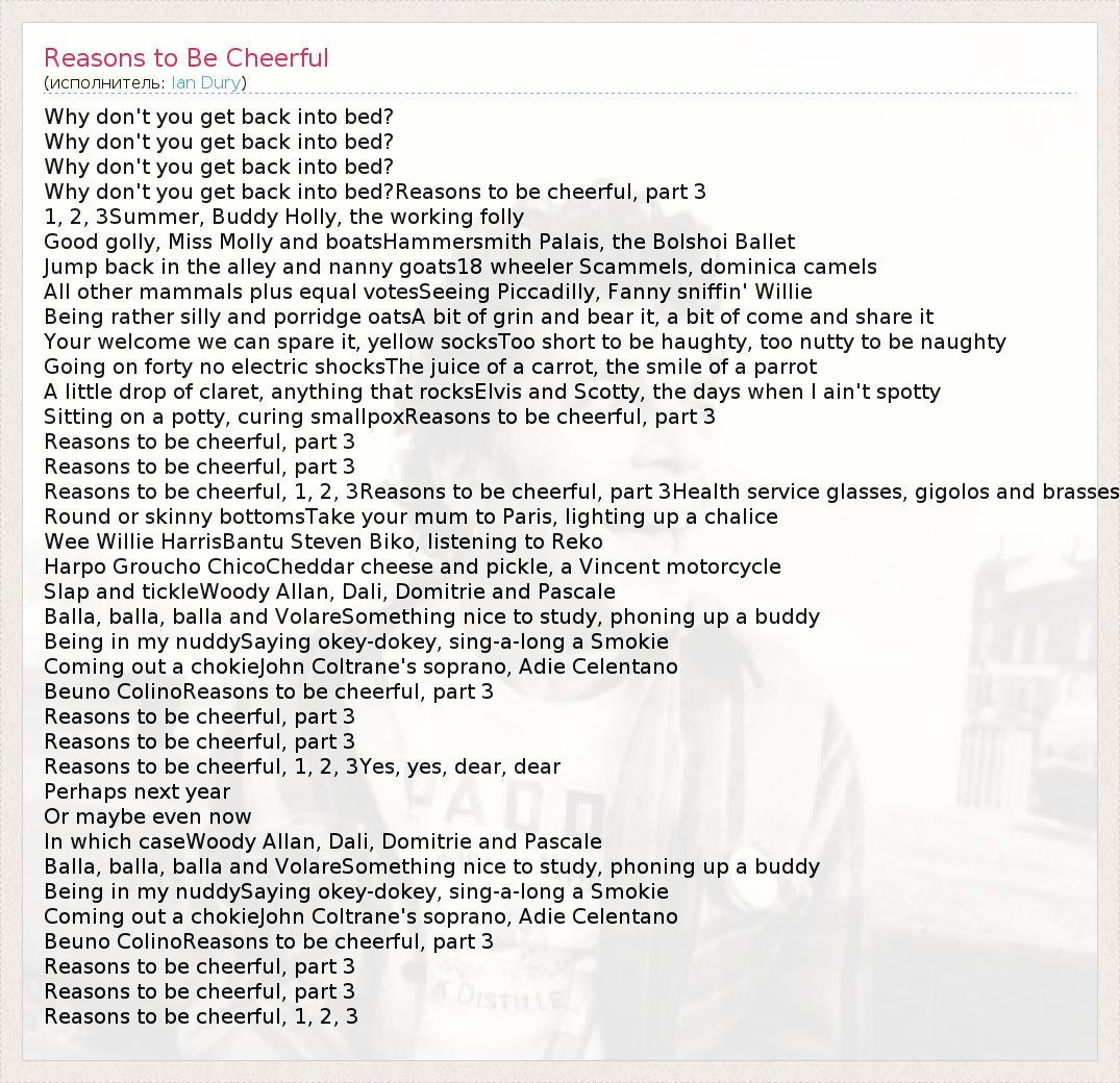 А как ты думаешь, о чем песня "Reasons to Be Cheerful" ?