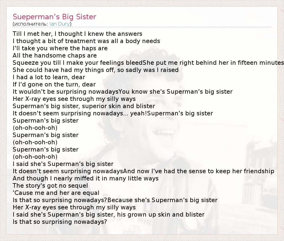 ГлавнаяИсполнителиIan DurySueperman’s Big Sister