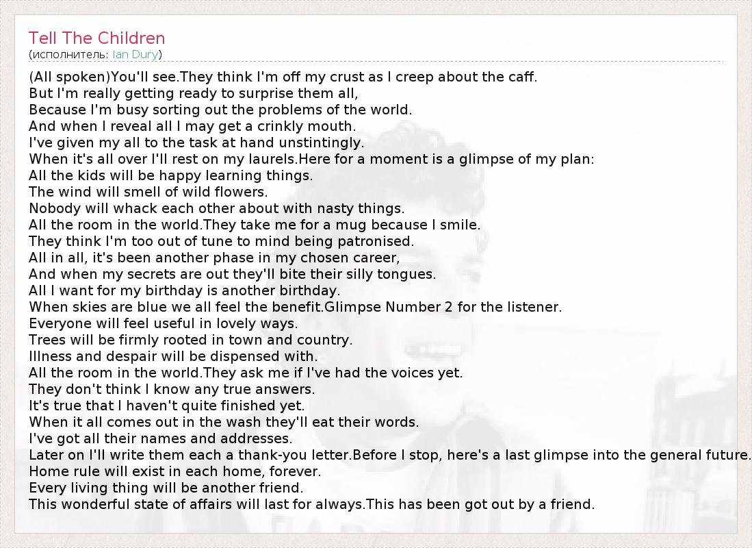 А как ты думаешь, о чем песня "Tell The Children" ?