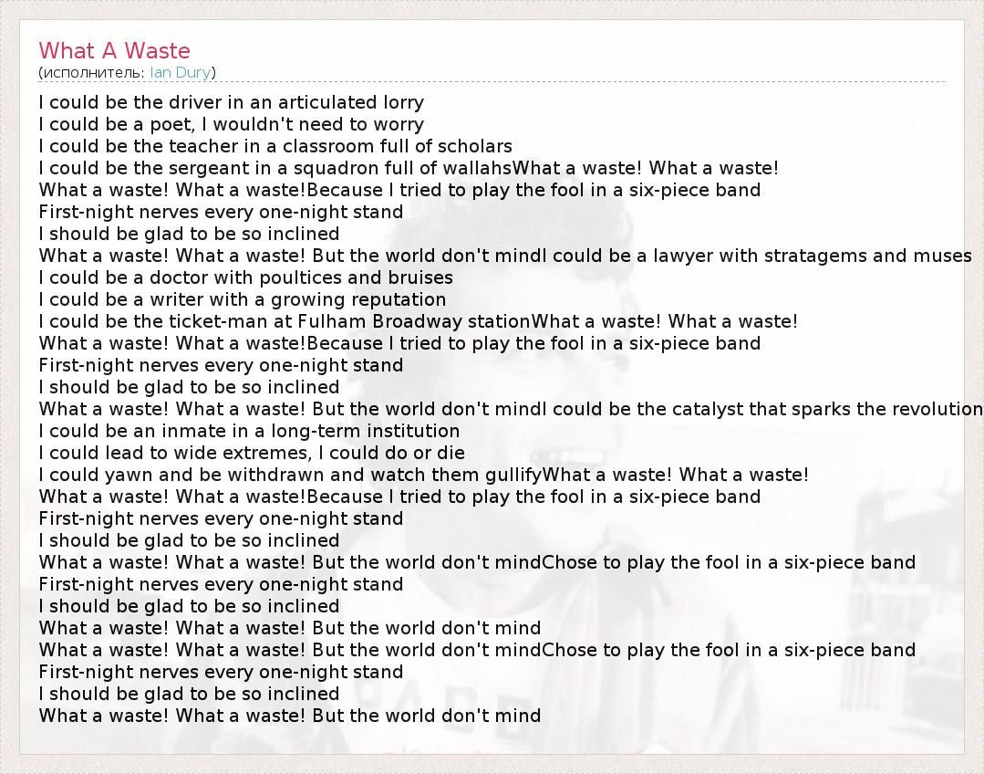 What a waste! What a waste! But the world don't mindChose to play the fool in a six-piece band