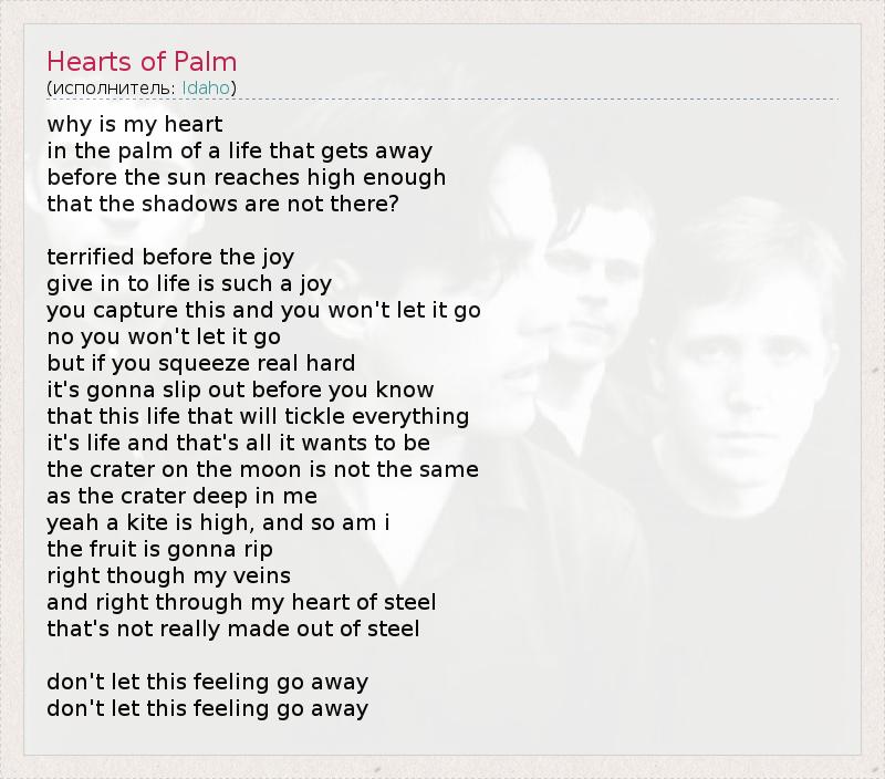 А как ты думаешь, о чем песня "Hearts of Palm" ?