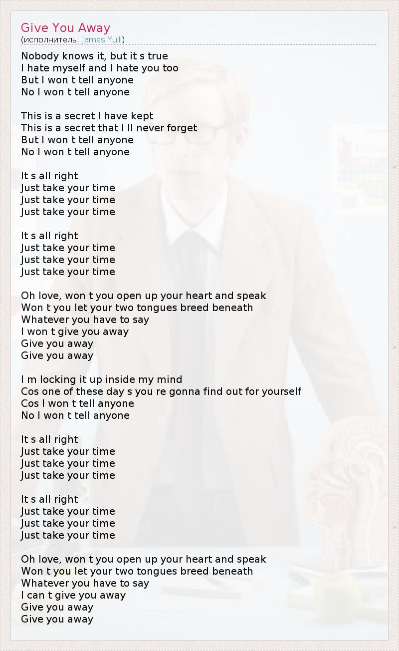 А как ты думаешь, о чем песня "Give You Away" ?