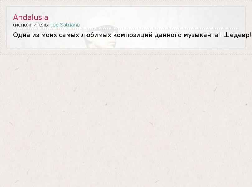 Одна из моих самых любимых композиций данного музыканта! Шедевр!