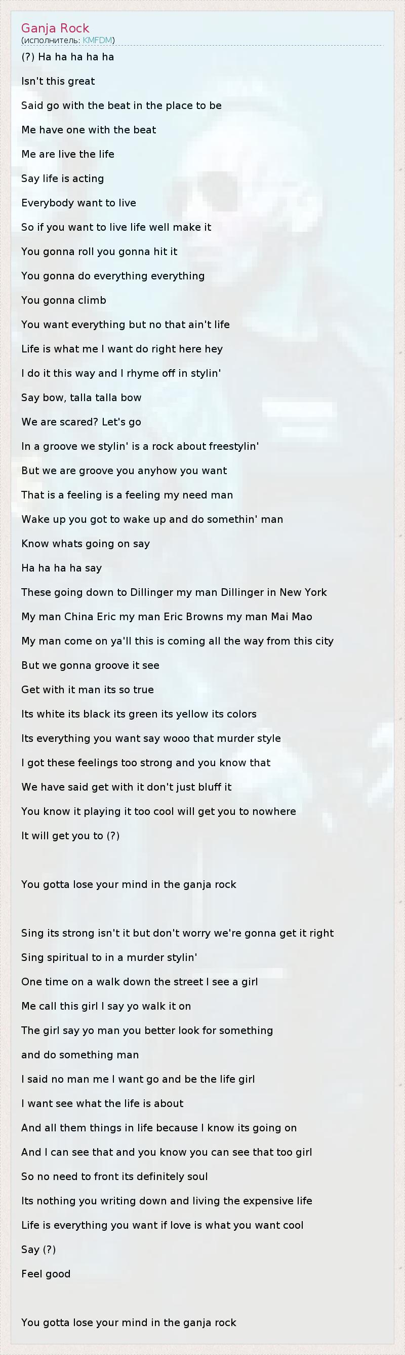 А как ты думаешь, о чем песня "Ganja Rock" ?