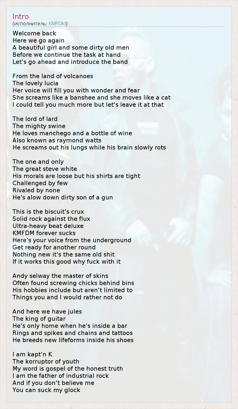 Это интересно:Группа KMFDM появилась в 1984 году в Гамбурге. Основателями группы являются Саша Конецко и Удо Штурм. В этом же году и появилось загадочная аббревиатура KMFDM. После того как Саша и Эн Эш покинули «Missing Foundations» они взяли к себе в команду англичанина Рэймонда Уоттса. Он же и придумал аббревиатуру KMFDM, так как для него название Kein Mitleid Für Die Mehrheit (Никакой Жалости к Большинству) было слишком сложным... продолжение