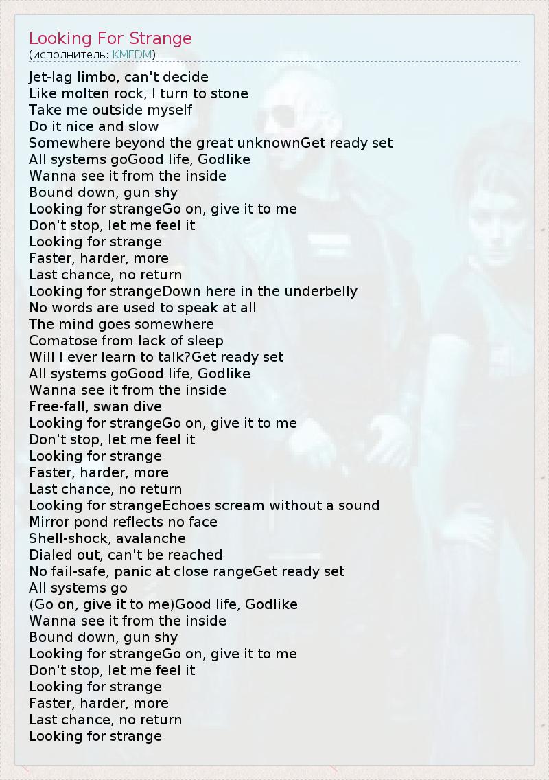 А как ты думаешь, о чем песня "Looking For Strange" ?