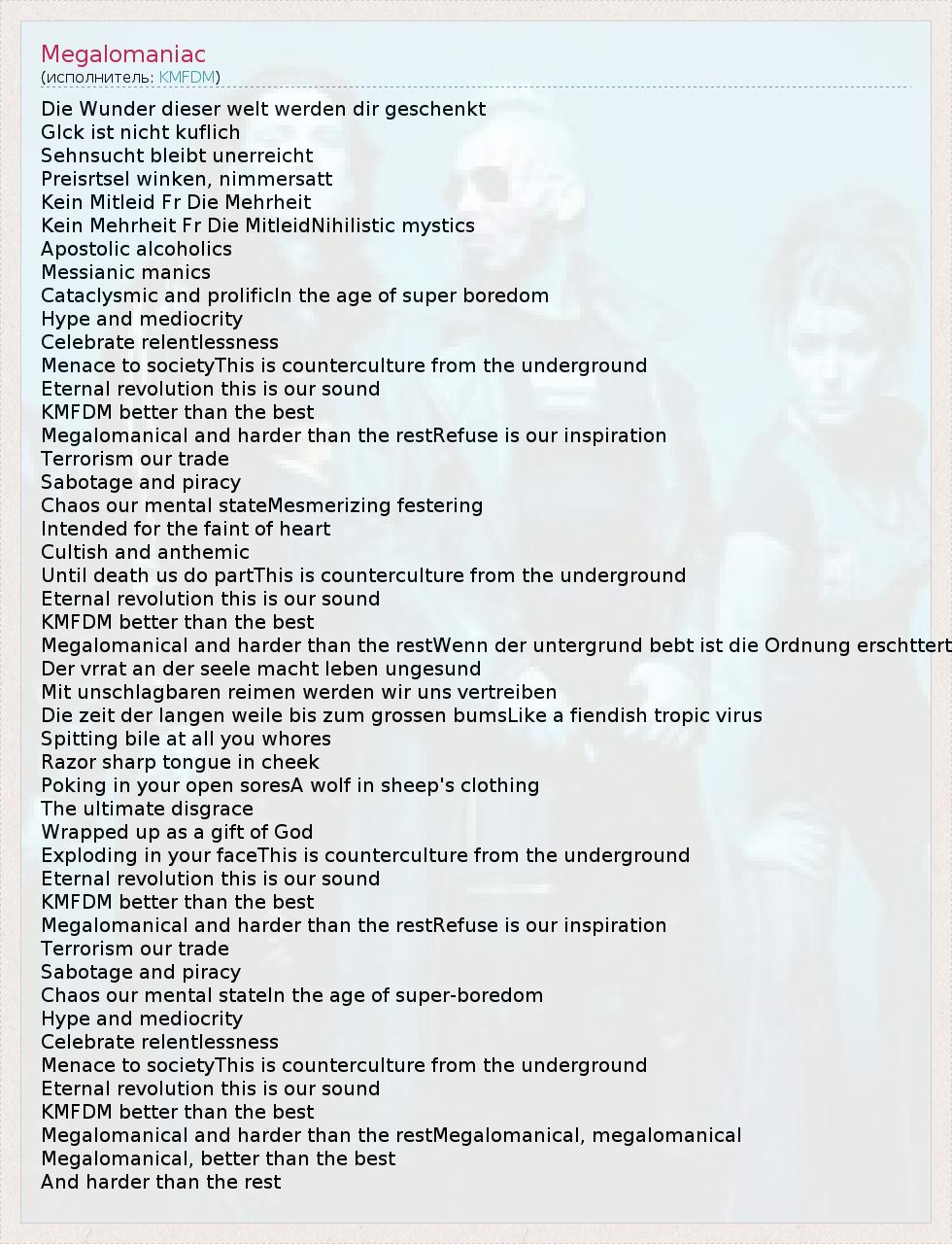 А как ты думаешь, о чем песня "Megalomaniac" ?