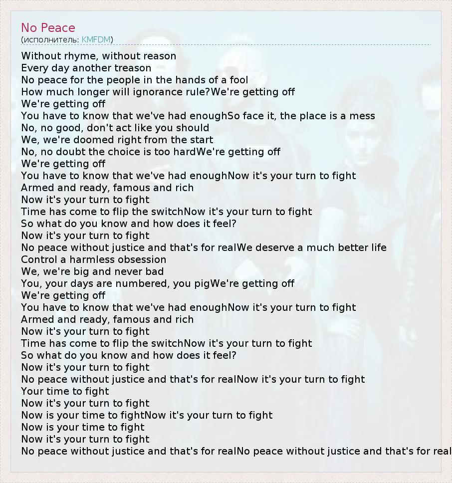 А как ты думаешь, о чем песня "No Peace" ?